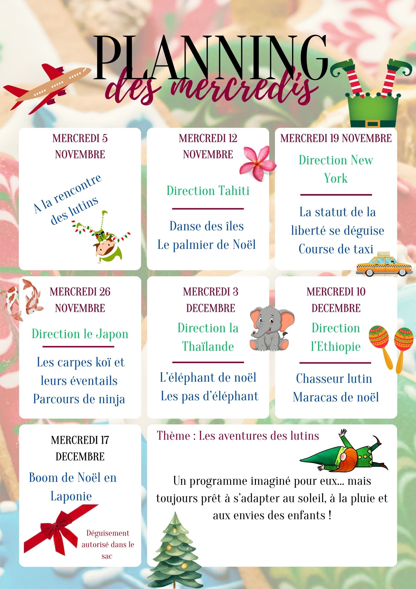 Chaque semaine, les enfants partiront à la rencontre des lutins et vivront des aventures originales : direction Tahiti, New York, le Japon, la Thaïlande ou encore l’Éthiopie… Au programme : danses, créations, jeux et découvertes culturelles revisités à la sauce féerique de Noël.