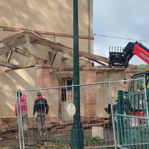 Les travaux prévus à l’école de Menville ont démarré pendant les vacances scolaires. La première étape a consisté en la démolition de l’ancien préau ainsi que la création d’une nouvelle ouverture permettant un accès direct à l’ALAE.