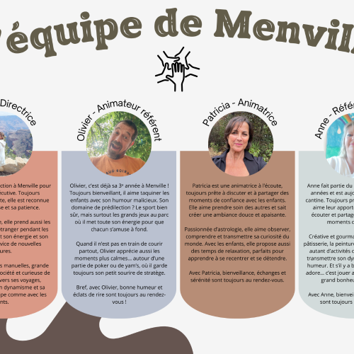 Grâce à l’investissement de l’équipe, l’ALAE de Menville constitue un lieu d’accueil et de vie où les enfants grandissent, s’épanouissent et partagent des expériences enrichissantes au quotidien.